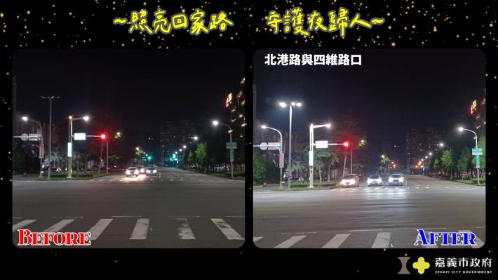 114年完成4處路口設置6支高燈,將單燈增設為4燈LED高流明數燈具及提高燈桿改善照明範圍,放亮效果顯著,大幅提升路口明亮度及用路人視野範圍,增加路口行車安全、降低交通事故發生,保障行人與行車安全。